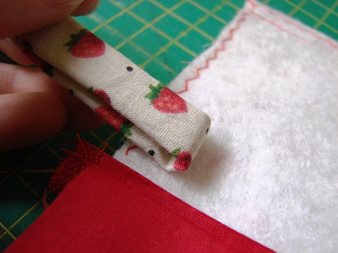 11. Logo depois, na lateral onde a alça foi colocada, passe uma costura reta;