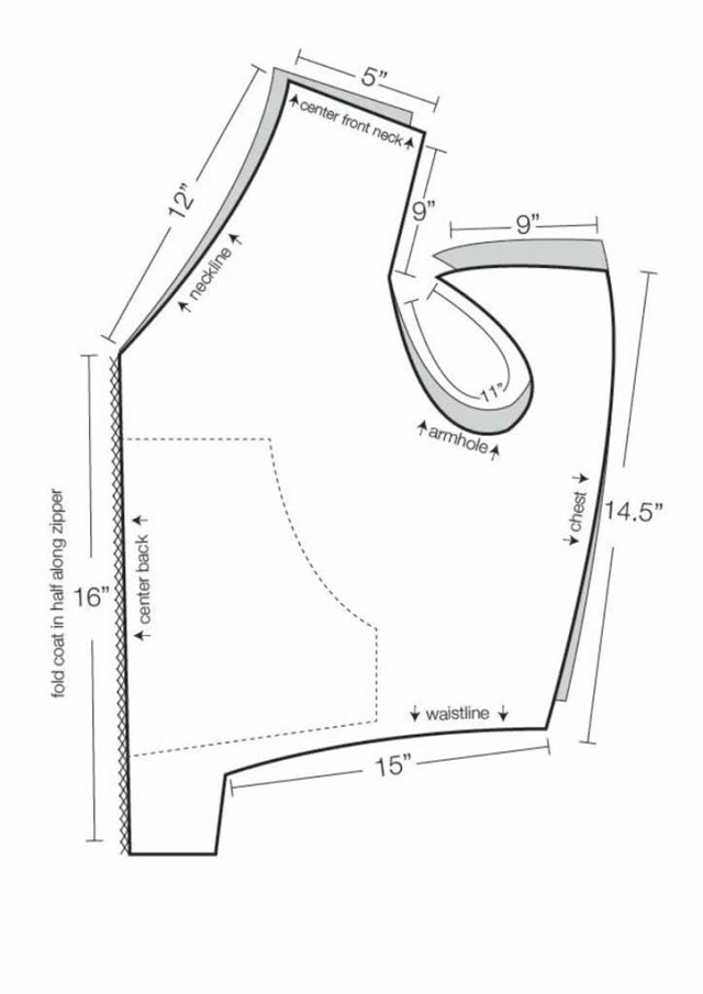 Portanto, você precisa medir o peito, a circunferência do pescoço e o comprimento do dorso (da base da coleira até a base do rabo) do seu cachorro. Com isso, você consegue fazer os ajustes necessários no molde.