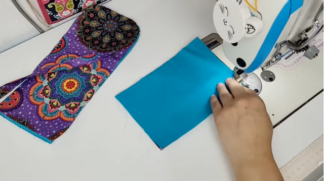 7. Agora passe o tecido do forro para trás e passe mais uma costura no mesmo local.